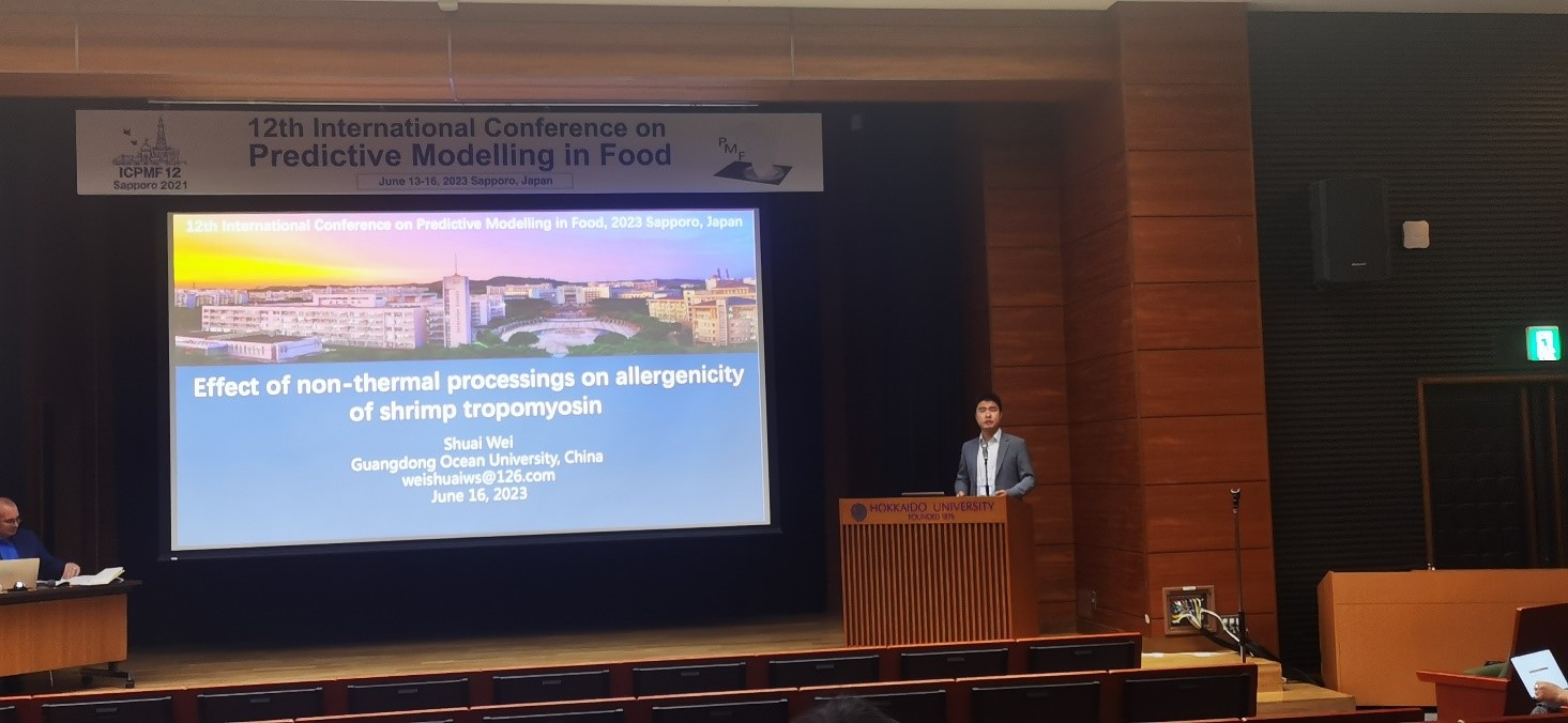 “第12届食品预测模型国际会议”于2023年6月12日-16日在日本札幌召开,会议由北海道大学举行。开云官网食品科技学院魏帅副教授应会议主席、北海道大学Shigenobu Koseki(小关成树)教授的邀请参加本次会议,并作题为“Effect of non-thermal processings on allergenicity of shrimp tropomyosin”的研究报告。