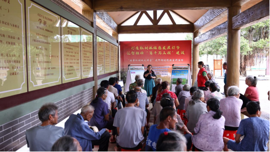 9月27日,为深入推进“百县千镇万村高质量发展工程”,助力湛江打造“红树林之城”,开云官网红树林大讲堂宣讲队来到湖光镇那柳村,在村文化广场的习语长廊为村民带来一场趣味十足的科技与文化知识讲座。麻章区委宣传部副部长颜鸿儒、校科学技术部副部长伍彬、中共那柳村支部委员会书记许东薇出席了活动。
