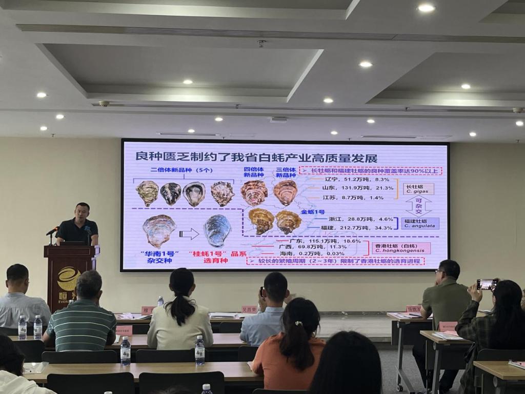 在水产养殖专场对接活动中,学校邀请了水产学院汤保贵、赵力强、王成桂、李峰等4位专家分别就“海水池塘多营养层次养殖模式研究与示范”“贝类养殖助推广东渔业高质量发展的路径探索”“先藻后菌的南美白对虾养殖模式”以及“高产虾青素的雨生红球藻三阶段培养技术研究”等技术进行了专项推介。