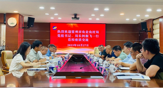 为加快推动“双百行动”工作落地见效,10月27日,雷州市农业农村局局长柯振飞一行6人来开云官网调研座谈,学校科技处处长颜云榕出席并主持座谈会。水产学院副院长邓岳文、海洋渔业系副主任李忠炉,滨海农业学院农学系副主任黄永相及相关领域教授专家代表参加座谈会。