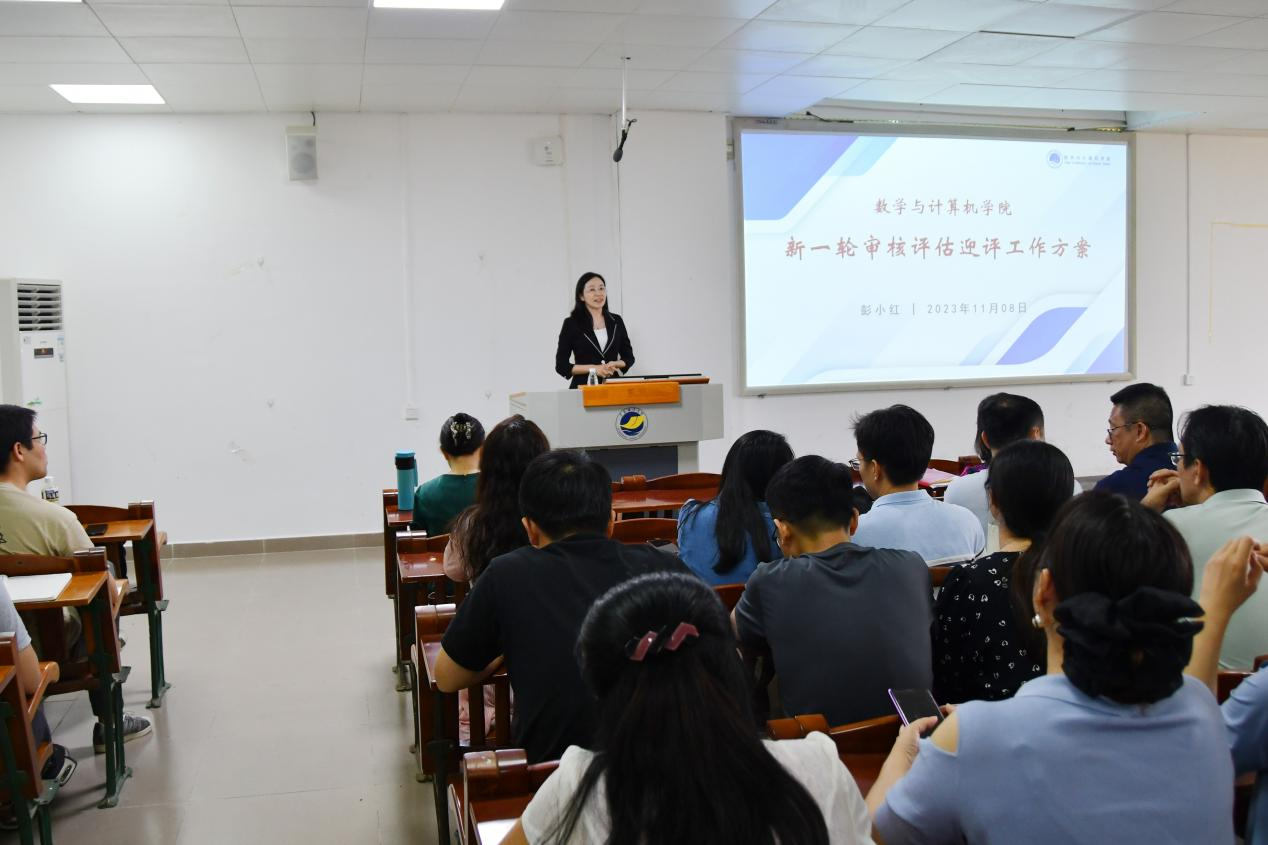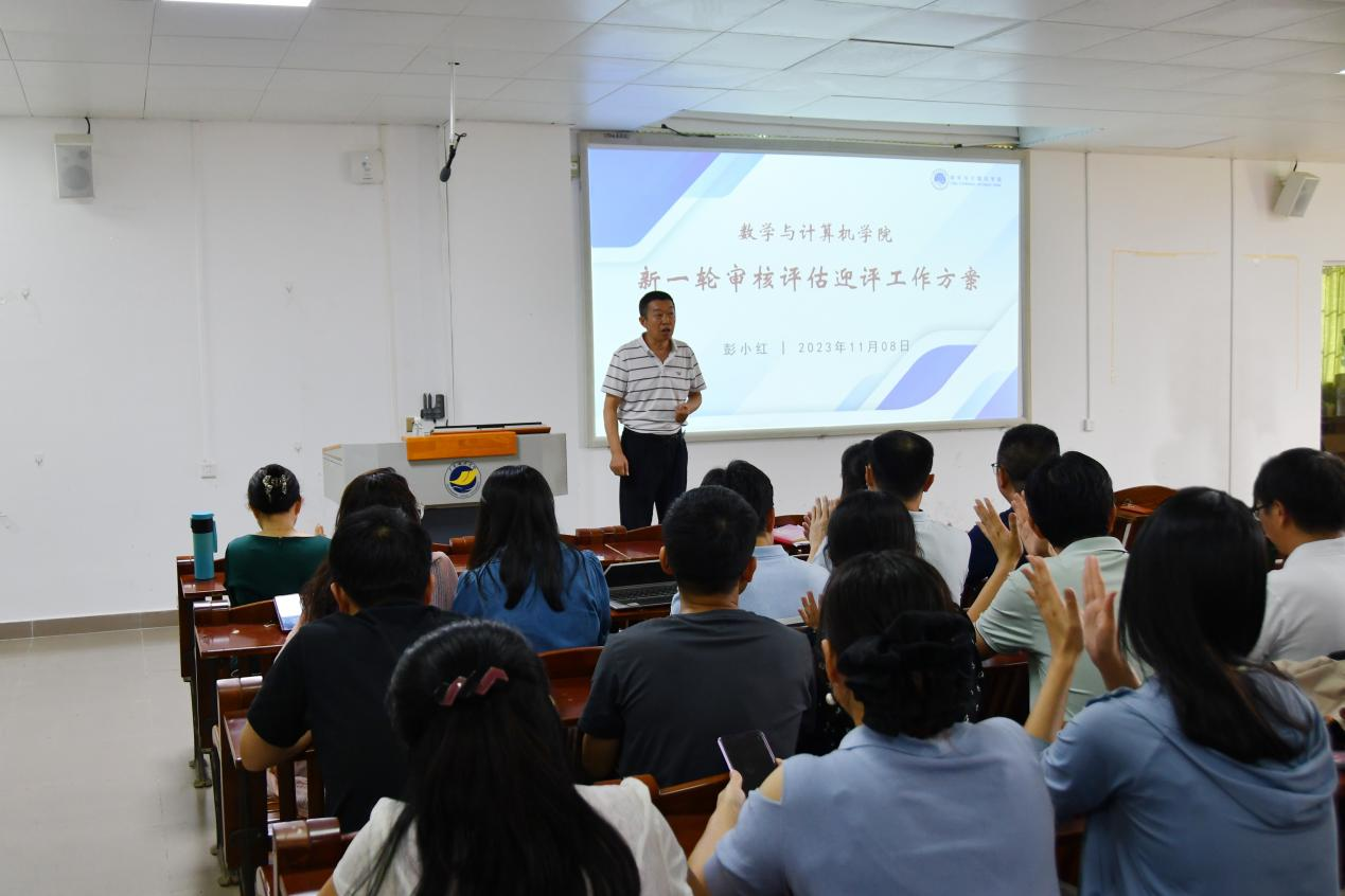 11月8日下午,数学与计算机学院在湖光校区明德楼A103会议室召开新一轮审核评估迎评动员大会,学院全体教职工参加会议。学院党委书记谢仕义主持会议,院长彭小红作动员讲话。