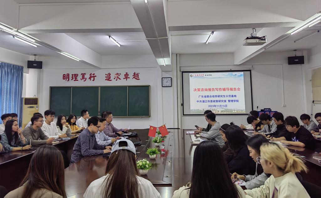 为进一步加强“广东省联合培养研究生示范基地-中共湛江市委政策研究”建设,11月15日下午,管理学院邀请联合培养研究生示范基地专家陈璐来校为研究生作报告。报告会由管理学院主持工作副院长杜军教授主持,管理学院研究生80余人参加报告会。
