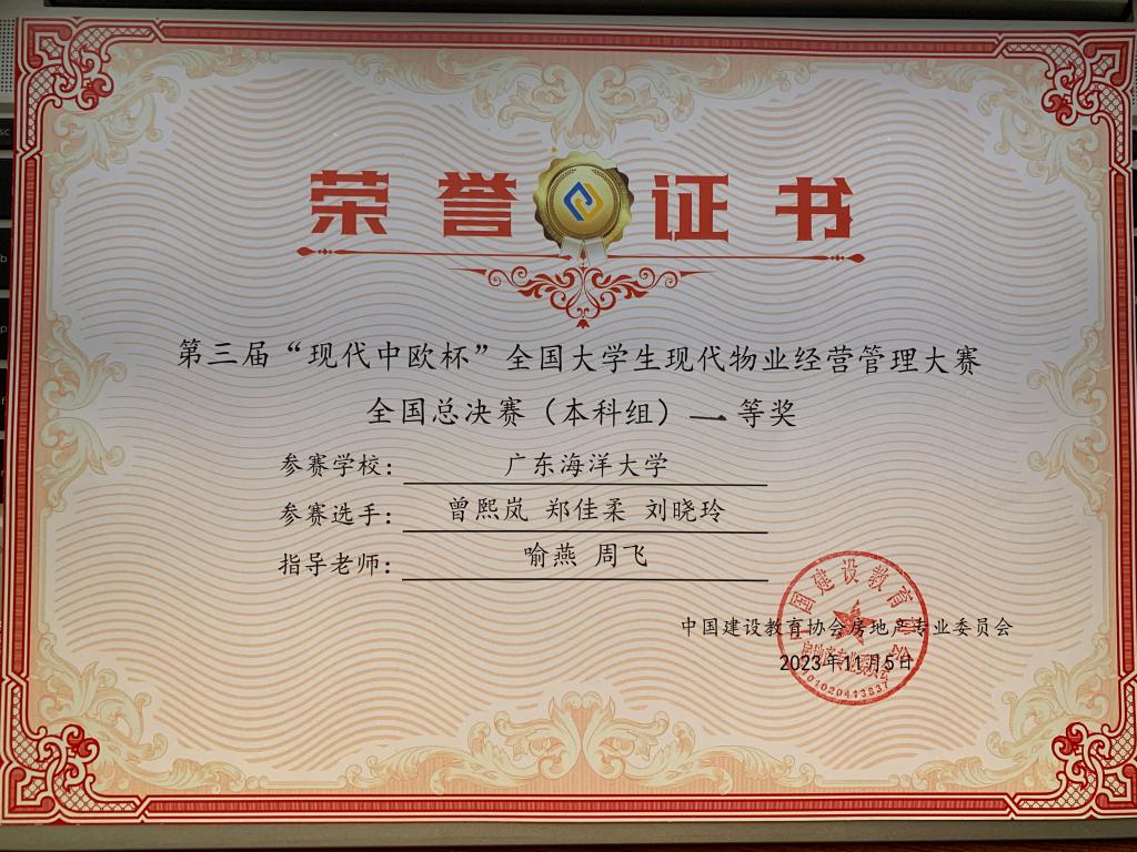 开云官网管理学院土地资源管理系共选派5支队伍参加此两项比赛。曾熙岚、刘晓玲、郑佳柔、孔宝莹、黎明燕、戚丁怡、苏玉婷、吴浩宾、周玖祺9位学子组成3支队伍斩获“全国大学生现代物业经营管理大赛全国总决赛本科组”一等奖1项,二等奖2项。冯慧仪、郭炜壕、郑凯莹、陈雲霖、黄妍、黄敏仪6位学子组成2支队伍斩获“全国大学生房地产开发经营管理大赛全国总决赛本科组”最佳竞答奖1项,二等奖2项。喻燕、周飞老师荣获“优秀指导教师”称号。