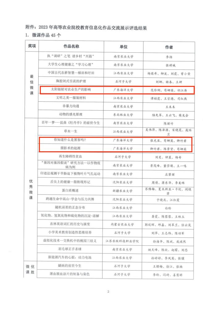 此次活动由中国教育技术协会高等农业院校分会主办,旨在贯彻落实党的二十大精神,响应国家数字中国建设和教育数字化战略行动,加快推进农业高校教育数字化转型和智能升级,促进信息技术与教育教学融合创新的教育信息化作品交流展示。本次交流活动主要包含微课和门户网站两类。