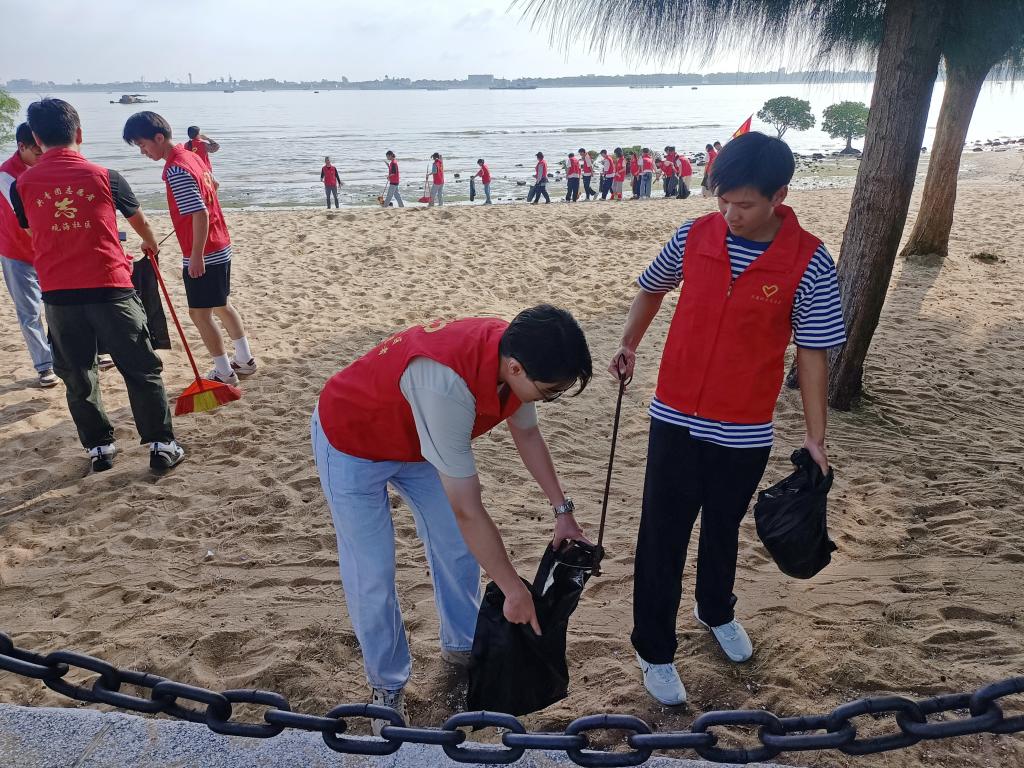 活动期间,学院师生参观观海社区新时代文明实践站,了解社区文化活动,学生代表向社区群众做“垃圾分类让城市更清洁”的宣讲。学院师生穿上红马甲,在社区工作人员带领下赴红树林开展志愿服务活动,大家互相配合,争先恐后地清理沙滩上、河岸边的漂流废弃物和被人随手丢弃的垃圾。