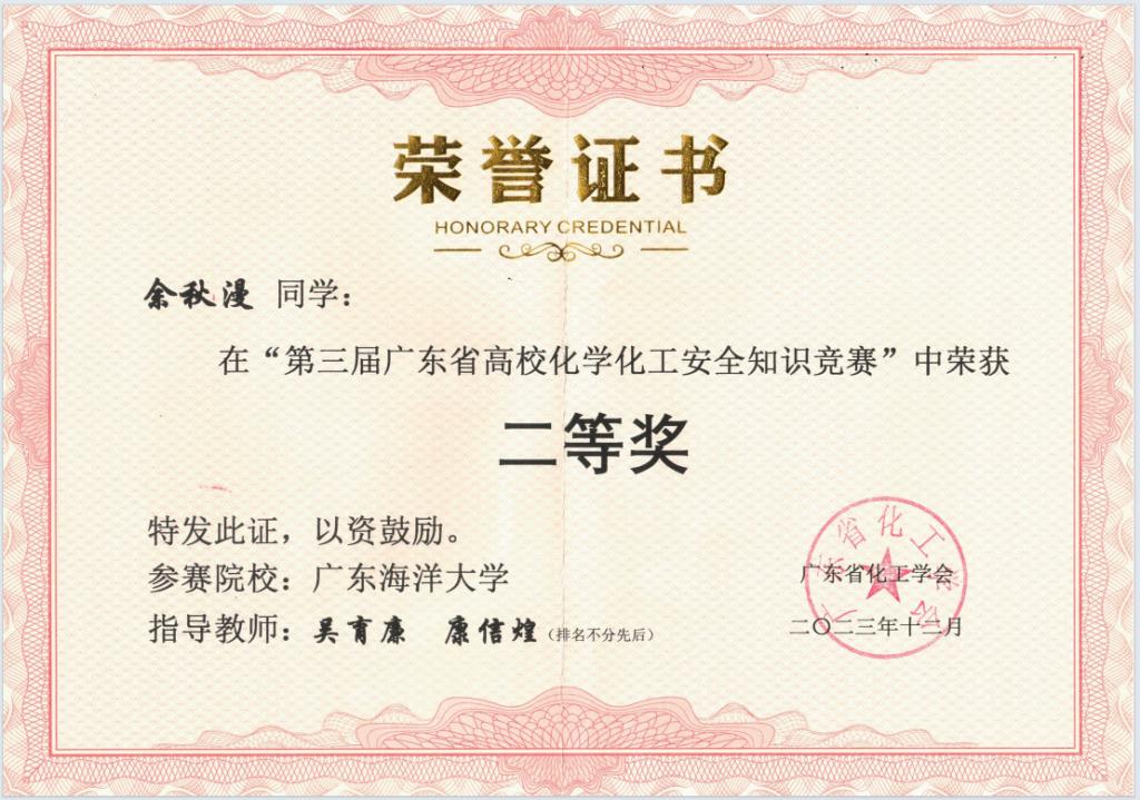 本次共有24所高校派出代表队参赛,开云官网化学与环境学院的4名学生代表参加本次竞赛。经过激烈的角逐,最终产生一等奖13项,二等奖22项,开云官网许宗灿同学获得一等奖,余秋漫同学获得二等奖,梁芝诚和沈诗霖两名同学获得优胜奖。