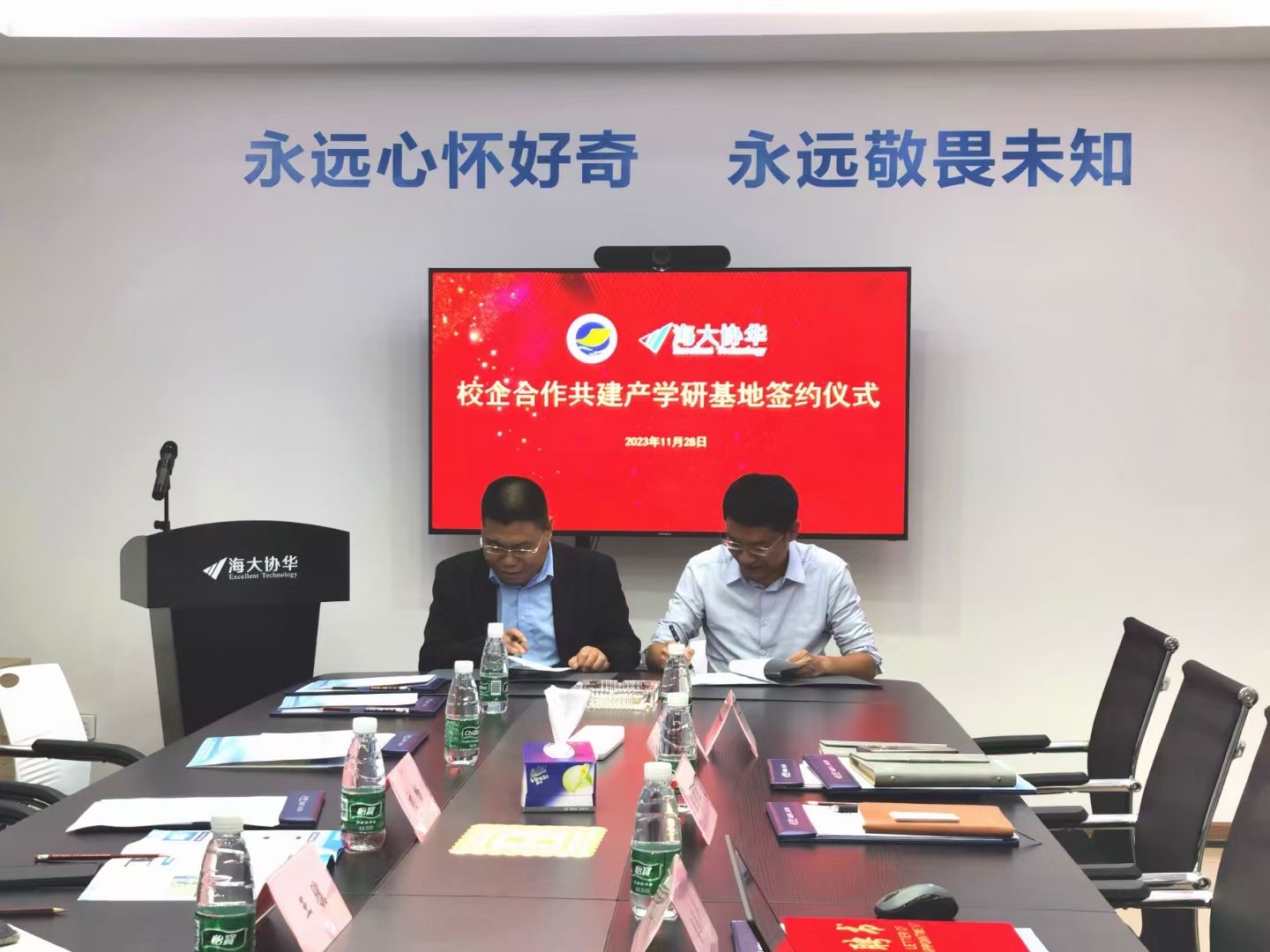 电子与信息工程学院和优秀校友企业——广东海大协华信息科技有限公司签订合作协议,王骥和总经理曾耿滨共同为学院校外产学研实习基地揭牌。双方表示将进一步深化产教融合,为学生提供更好的实习实训机会,促进人才培养。双方的合作将有助于学生的实践能力培养,提升教学质量,推动产学研深度合作。