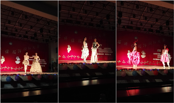 本次大赛共有30组环保服装作品进入决赛,涵盖湖光校区、海滨校区、寸金学院,作品主要是以废弃报纸、饭盒、塑料瓶、纱帐、宣传单、糖果饼干包装纸和树叶等物为原材料,设计者将服装创新、时尚与环保相结合,充分发挥想象力和创造力,制作出别出心裁的环保服装,利用专业模特的精彩T台秀展示服装的特色,赢得现场评委的高度评价和观众的热烈欢呼。第十三届环保服饰大赛的顺利举办助力推动湛江市“创文”工程的开展,得到了湛江市环保局的大力支持,同时也为海大师生呈现一场环保与时尚的视觉盛宴。