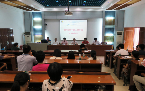 8月31日下午,管理学院在霞山校区图书馆报告厅召开新学期工作会议,谋求新学期发展布局。学院党政领导、全体教师参加了会议,会议由院长宁凌主持。校党委组织部部长林宇、干部科科长何丹娴应邀参加会议。