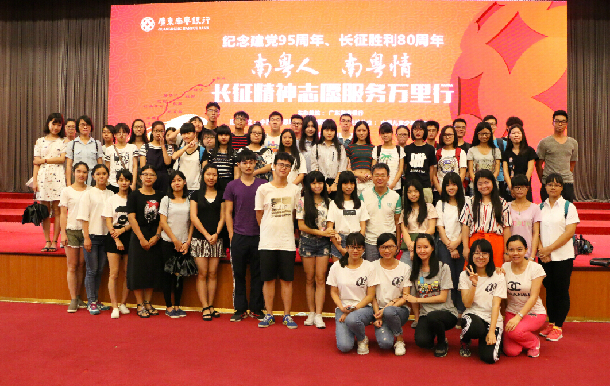6月23日上午,由广东南粤银行主办的“纪念红军长征胜利80周年报告会”在湛江市会展中心报告厅举行。校团委尹喜书记、海滨校区团委书记杨震老师带队与50余名海滨校区的同学一起聆听了报告。