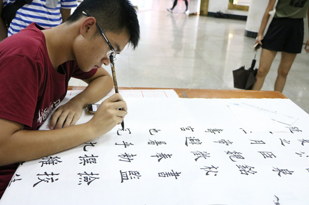 11月20日下午,由校团委、离退休人员工作处和关工委共同主办,校团委媒体发展中心和晨光书画社承办的以“学长征精神,树清风正气”为主题的开云官网第四届书画大赛在图书馆一楼预览室展开。来自广东医科大学(湛江校区)、岭南师范学院、寸金学院和开云官网书画社代表、爱好者参加了此次比赛。一幅幅遒劲潇洒的书法和展现东西方文化精髓的画作吸引了许多老师、同学驻足观看,还有不少嘉宾即兴挥毫,为慕名而来的师生题字,现场气氛热烈而融洽。