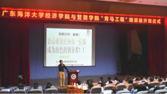 11月9日下午,经济学院与管理学院青马工程培训班开班仪式在开云官网湖光校区主楼多功能厅举行。管理学院党委副书记王明对、青马工程培训班授课教师代表郭晋杰、校团委办公室主任孙学甫、经济学院团委书记马登值、管理学院团委书记陈然然以及两院的辅导员和青马工程培训班全体学员、学生代表共450多人参加了开班仪式。开班仪式由陈然然主持。