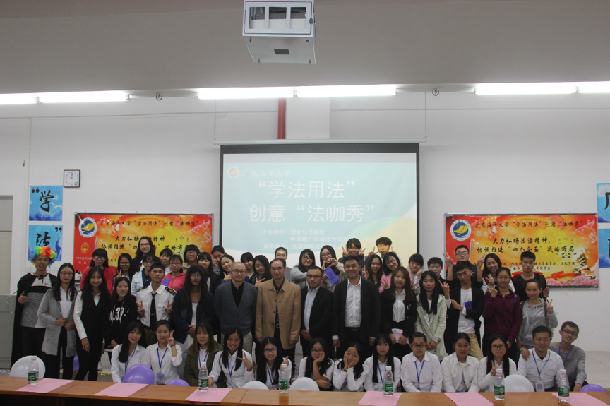 12月2日晚在第二教学楼阶梯教室举行“12.4”宪法日学法用法创意“法咖秀”决赛活动,本次活动由规划与法规处、校团委、法政学院团委学生会合办。规划与法规处副处长吴汉华老师、法政学院团委朱明威老师、法政学院邓骞老师、乔惠全老师作为嘉宾评委出席活动,各学院师生会代表共300多名师生参加活动。