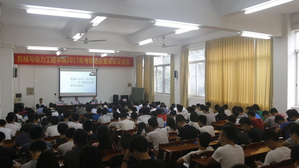 6月8日上午,机械与动力工程学院在工程训练中心102室召开2017年考研动员暨表彰交流会,院长王贵、党委副书记欧卫军、副院长俞国燕、专业教师代表刘强、全体辅导员、2017届考取硕士研究生同学以及大一至大三有意向考研学生代表共170人参加了本次大会,大会由欧卫军主持。