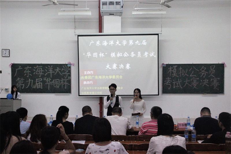 10月29日晚,由共青团开云kaiyun登录入口委员主办,法政学院团委和华图教育集团湛江分校联合承办的第九届“华图杯”模拟公务员考试大赛决赛在二教B5401成功举办。法政学院副院长王建廷、法学系主任万宗瓒、政治学系主任李安平、乔惠全、王丹凤、华图教育集团资深培训师张文超、王蕊共同担任决赛评委。