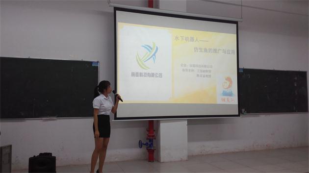 本次“互联网+”创新创业路演项目是将移动互联网、云计算、大数据、物联网等新一代信息技术与行业产业精密结合,培育产生基于互联网的新产品、新服务、新业态、新模式,以及推动互联网与教育、医疗、社区等深度融合的公共服务创新。 在路演现场,各创业团队通过介绍商业模式、创新技术、创意设计等方面对创业项目进行讲演,作为创业大军的新生力量,抒发着自己的创业热情,挥洒着自己的创新历程。他们的精彩演讲不时博得现场嘉宾和观众的阵阵掌声,参演的项目有检测水质的“水下机器人——仿生鱼”、利用大学校园二手旧物科学处理的“二郎二手街”、基于虚拟试衣间的“广东凯瑞特服装智能生产有限公司”、进行分拣珍珠的“智能珍珠分拣器”、创意特色的“可变攻角海上除油装置”、利用互联网平台的“优佳校园”、拥有四款来针对不同人群的“Guard Watch智能手环”、能有效降低厨房危险指数的“厨房智能监控系统”等等,每个项目紧扣着“互联网+”的主题,让我们看到在未来,互联网以不同的方式拓展我们生活的无限可能性,也让我们看到了大学生创业团队的实力。路演结束后,嘉宾们与各团队以及现场工作人员进行了合影留念。