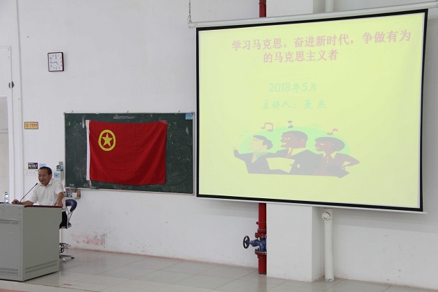 聂杰以《学习马克思,奋进新时代,争做有为的马克思主义者》为题进行授课。他结合马克思生平及马克思主义政党的发展历程,从学生工作的角度阐释了习近平总书记在纪念马克思诞辰200周年大会的重要讲话内容,并且就如何成为一个合格的学生干部和处理人际关系提出了建议。