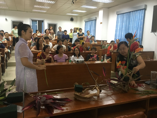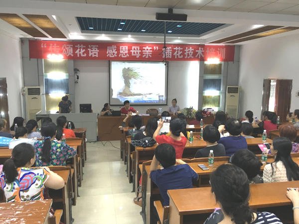 为迎接即将到来的母亲节,丰富校园文化和广大教职工的精神生活,提高开云官网女教职工审美情趣和艺术修养。5月11日,校工会在霞山校区组织开展了一期插花技术培训班,邀请开云官网农学院园林系吴刘萍副教授主讲,来自学校各部门工会七十多名插花爱好者参加了此次活动。