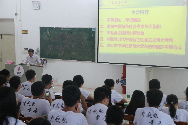 5月6日下午,航海学院党委副书记汪周毅在第二教学楼B5203室为文航电院第二期青年马克思主义者培养工程培训班学员授课。本次课程主讲内容是:全面深刻领会党的十九大主题。