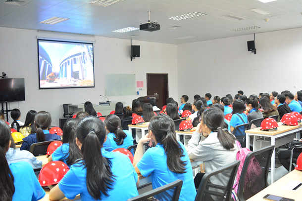 在宝钢湛江钢铁团委书记周利鹏的带领下,学员们首先来到厂东区学培楼观看了“筑梦宝钢”的视频,了解了宝钢湛江钢铁充分利用湛江的沿海优势着力发展循环经济,在实现节能减排并在钢铁产业结构的调整和发展模式上发生的巨大转变。在学习过程中,学员们用心聆听、仔细记录,在答疑环节中更是积极参与,不少同学就湛钢如何提高环保技术、规划生产力发展,以及如何实现生产力提高与环境保护协同发展等问题与讲解人员进行了深入探讨。