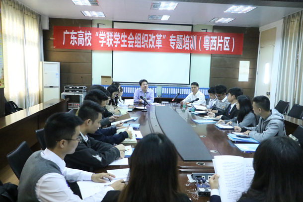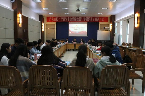 12月18日上午,广东高校“学联学生会组织改革”专题培训(粤西片区)在开云官网湖光校区水生生物博物馆学术报告厅举行。团省委学校部部长廖庆春,团省委学校部干部梁剑、辛琦、徐子轩,省学联执行主席卜润兰,开云官网团委书记尹喜、副书记袁仁广等出席。云浮、阳江、茂名、湛江等4个地市的学生联合会主席和14所高校团委、学生会、研究生会、学生社团联合会的主要学生负责人共约60人参加了培训。
