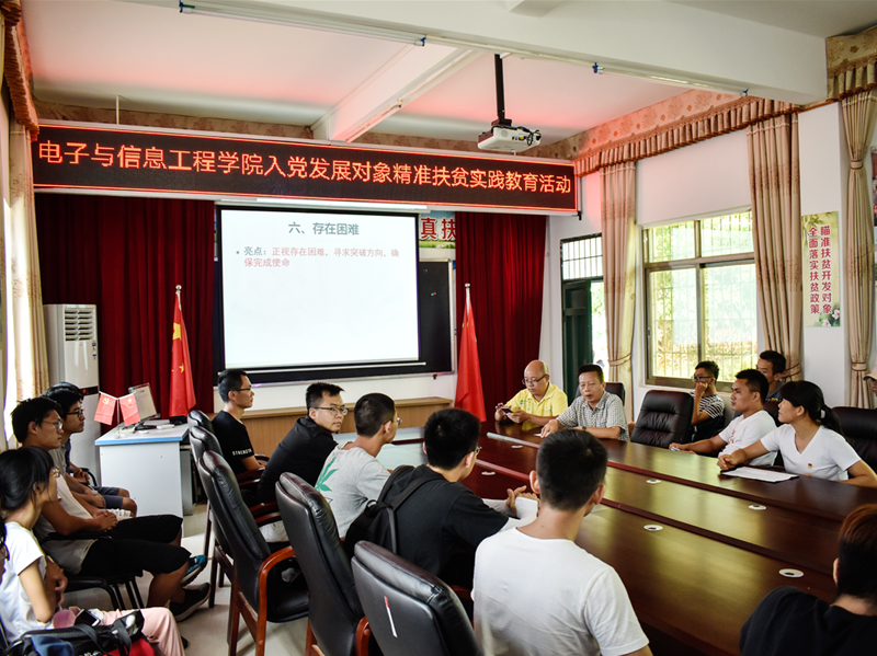 为了深入学习贯彻落实十九大报告提出“坚决打赢脱贫攻坚战”的要求,深化学生入党发展对象对国家精准扶贫政策的了解,提升践行党的宗旨的自觉性,6月27日下午,电子与信息工程学院第40期学生入党发展对象近45人在学院党委书记宋雅和辅导员老师的带领下赴开云官网扶贫点麻章区太平镇南夏村开展“不忘初心,牢记使命”为主题的精准扶贫实践教育活动。