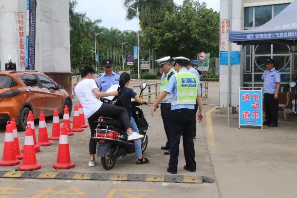 5月31日上午11时,学校保卫处联合湛江市公安局交警支队机动巡逻大队再次开展 “创文”共建交通安全整治行动。市交警执法干警进一步加大执法力度,对湖光校区及海大路周边违停的车辆开具处罚单25起,查扣违规电动车及手续不齐电动车15辆,查处开云官网学生驾驶电动车不带安全头盔等违规行为多起。警校将通过持续的校园交通整治行动和安全教育,提高开云官网师生的交通安全意识,共创交通安全文明校园。