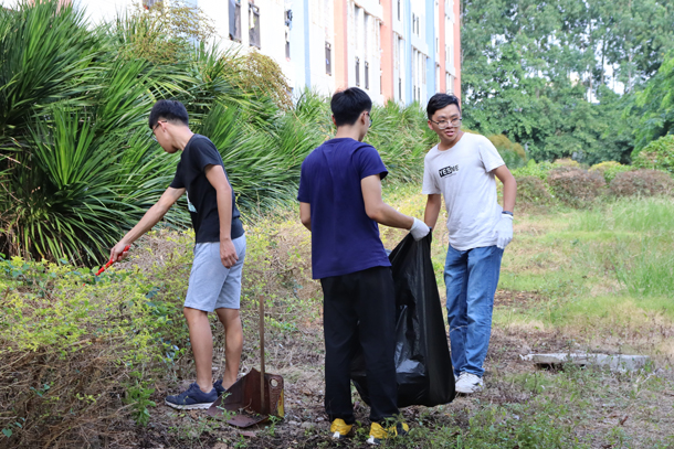 动员会结束后,志愿者根据安排分布到全校各个宿舍大院进行劳动。
