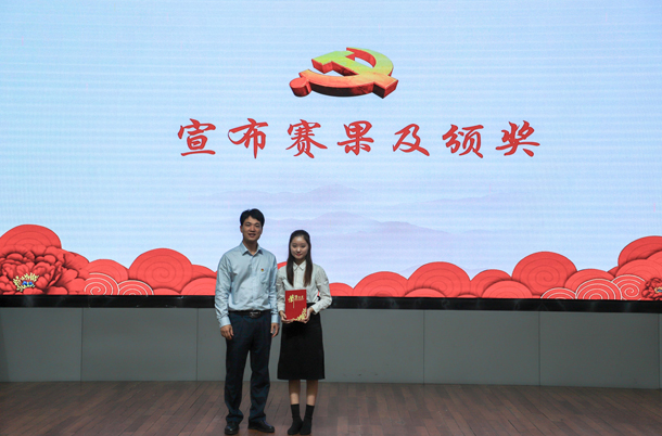 最终,中歌艺术学院马艺荧同学获得一等奖,食品科技学院常夏莘、法政学院郑冰雪两位同学获得二等奖,陈卓、刘雅楠、刘健、张嘉晴三位同学获得三等奖,林彩琼、黄志明、李彬彬、何滢池、赖巧槟五位同学获得优秀奖。现场领导嘉宾为获奖的同学们进行了颁奖。