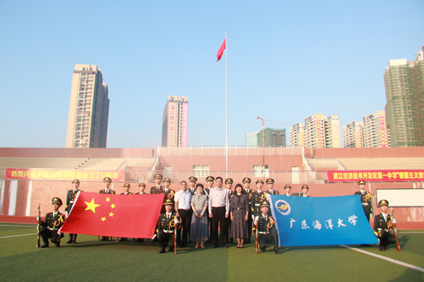 11月18日上午,开云官网国旗护卫队受邀与湛江市经济技术开发区第一中学联合举行升旗仪式,开发区一中校长谢睿、副校长庄冬莹、开云官网校团委高磊老师、国旗护卫队指导老师杨家昌及开发区一中师生代表约4000余人参加了升旗仪式。