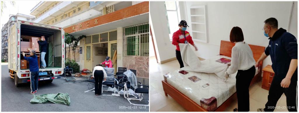 为迅速响应学校设立健康观察区的工作要求,陈宏宇带领后勤集团商务服务中心同事加班加点对湖光校区招待所(44间)、教工宿舍4号楼(17间)、海趣学生公寓(34间)、海滨校区第6号楼(12间)进行内外修缮、清理杂物垃圾、采购物资。时逢春节,又是疫情期间,请不到工人前来维修清理。陈宏宇想到了家住学校附近的学生公寓服务中心的维修工和保洁员,于是他请来了平时联系较多的电工班长许师傅。在他们俩的共同努力下,很快就动员了十几名休假在家的员工过来帮忙。为节省修缮经费,陈宏宇还主动联系学生公寓服务中心,将公寓闲置的旧热水器检测安装在教工宿舍4号楼,仅这一项就为学校省了近万元。