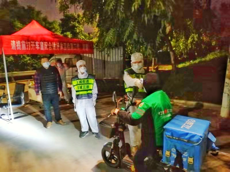 园林1161陈盛斌,在广东省化州市乐岭村,他的“防疫”工作是在疫情检查点守岗,对来访人员进行体温检测和身份登记。控制村民出入动向,减少来往聚会。
