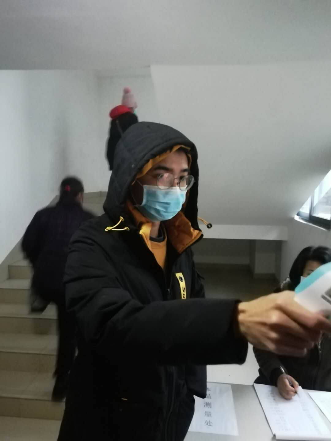 园艺卓越1171董嘉辉,在广东省韶关南雄市界址镇赵屋村委会,他的“防疫”工作是到从外地回来的村民家中收集其在外与在家接触人群等信息,并每天给当事人与其接触家人测量体温,并向他们宣传新型肺炎症状和防护措施。