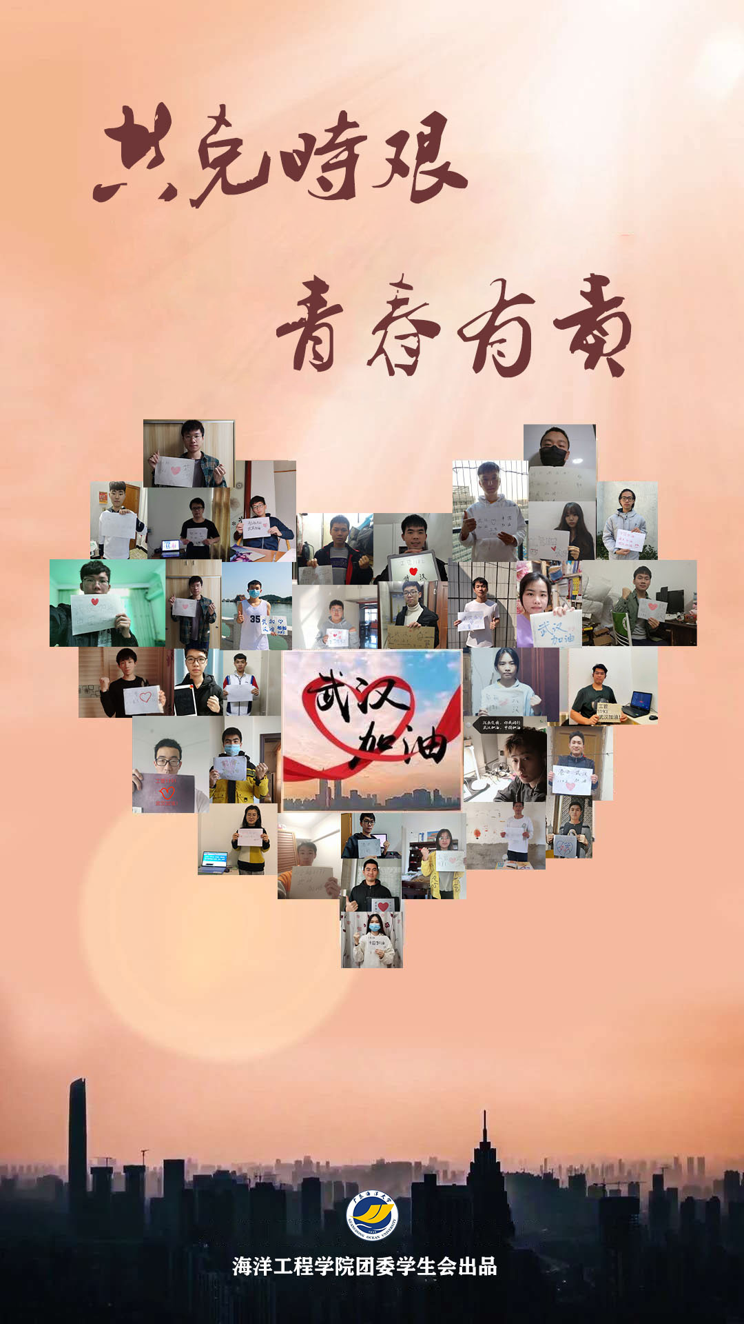 习近平总书记曾对青年学子说:“只有把小我融入大我,才会有海一样的胸怀,山一样的崇高。”海洋工程学院这群勇于担当的青年人,定能不负总书记期望,让青春在坚决打赢疫情防控阻击战中闪耀。