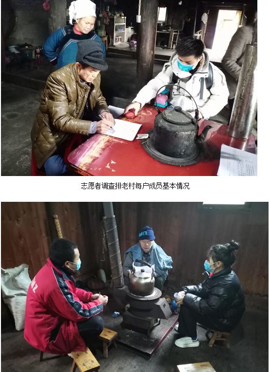 当前处于疫情防控的关键时期,来自养殖1171班的王潘妹主动为自己的家乡尽一份力,自愿加入排老村组织的大学生志愿者队伍,进行疫情防控方面的相关宣传。全村六个组在学习疫情防控的知识后,他们便开始深入调查村里每户成员的基本情况以及春节前后外出务工人员的务工地址记录,并给大家测量体温,宣传疫情防控知识。王潘妹同学十分耐心,她用少数民族语言(水语)给老人们仔细讲解疫情的严重性以及怎样防护疫情,自我保护的措施。