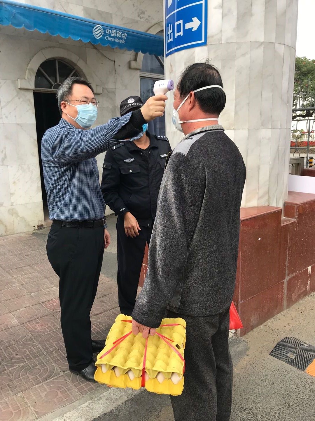 彭权群检查湖光校区西一门体温检测、值班值守情况