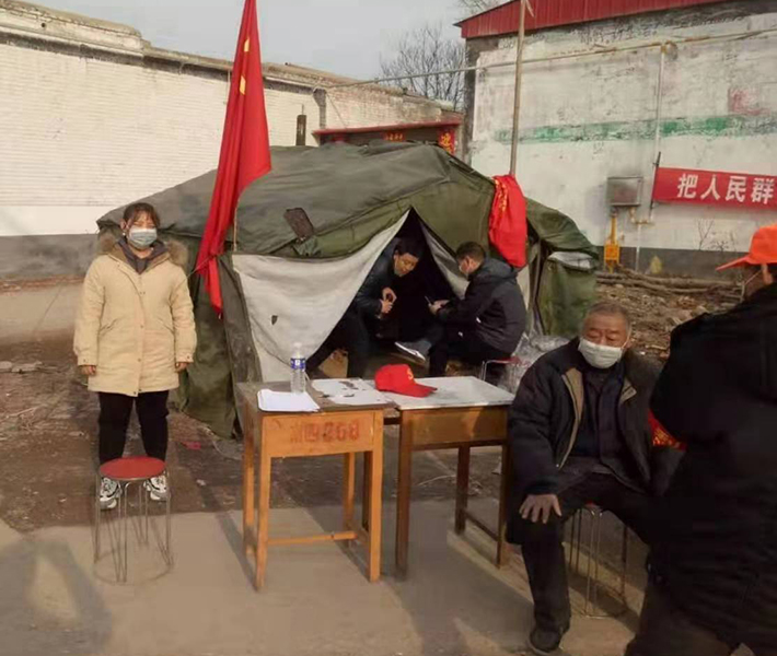 河北省邢台市宁晋县徐家河乡,服装1191班王若星同学作为一名防疫志愿者,每天坚守在村口站岗巡逻,禁止外来人员入内,测量出入人员体温,登记出入车辆和人员信息。