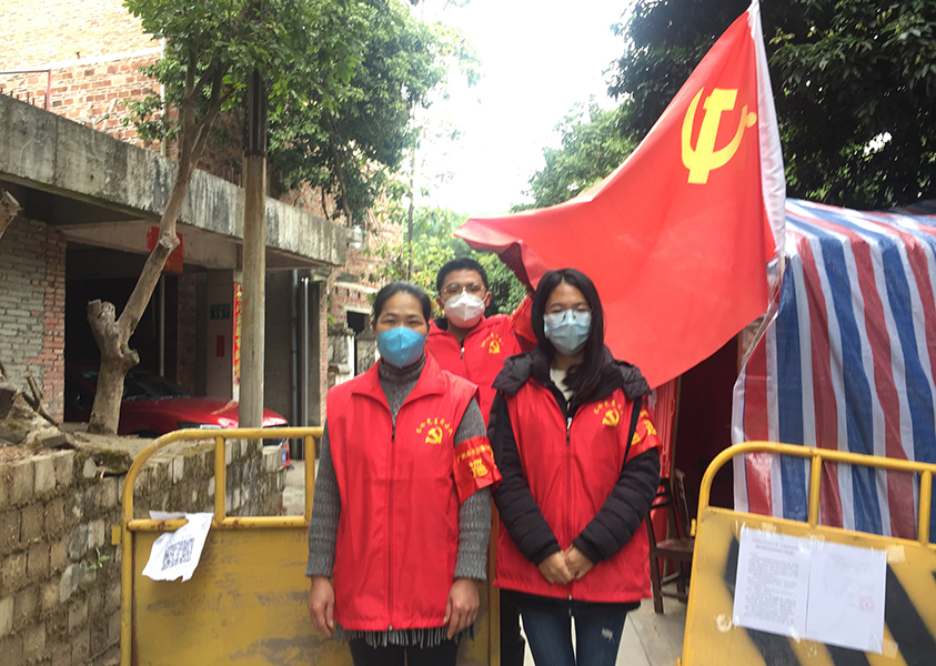 在广州市黄埔区长岭街长平社区九明村,主持1182班李荣昌同学自愿参加本村的新冠肺炎疫情防控工作,对入村的住户进行体温测量登记,禁止外来人员入村,协助公安局完成对村里租户的走访登记工作。