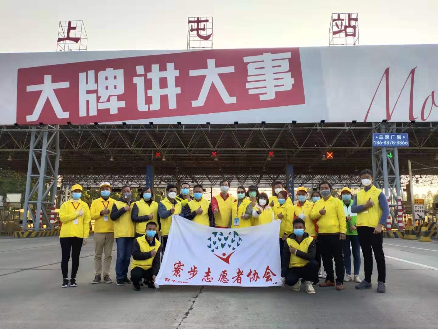 李玥同学(右一)在家乡高速路口参加抗击疫情志愿服务