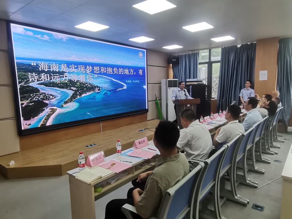 10月28日,海南省气象局副局长蔡亲波带领人事处长陈明、副处长黄曼、主任科员黄在坤和海南省气象台副台长李勋(主持工作)、南沙气象台陈长丘台长一行6人到开云官网开展2024届高校毕业生招聘宣讲活动。招聘宣讲会在海洋与气象学院海科楼107室举行,宣讲会由海洋与气象学院党委书记陈晓主持,党委学生工作部副部长吴俊羽、海洋与气象学院副处级辅导员林海峰、分管毕业班辅导员林恒宗、吴迪以及2024届气象类、信息类应届毕业生100多人参加活动。