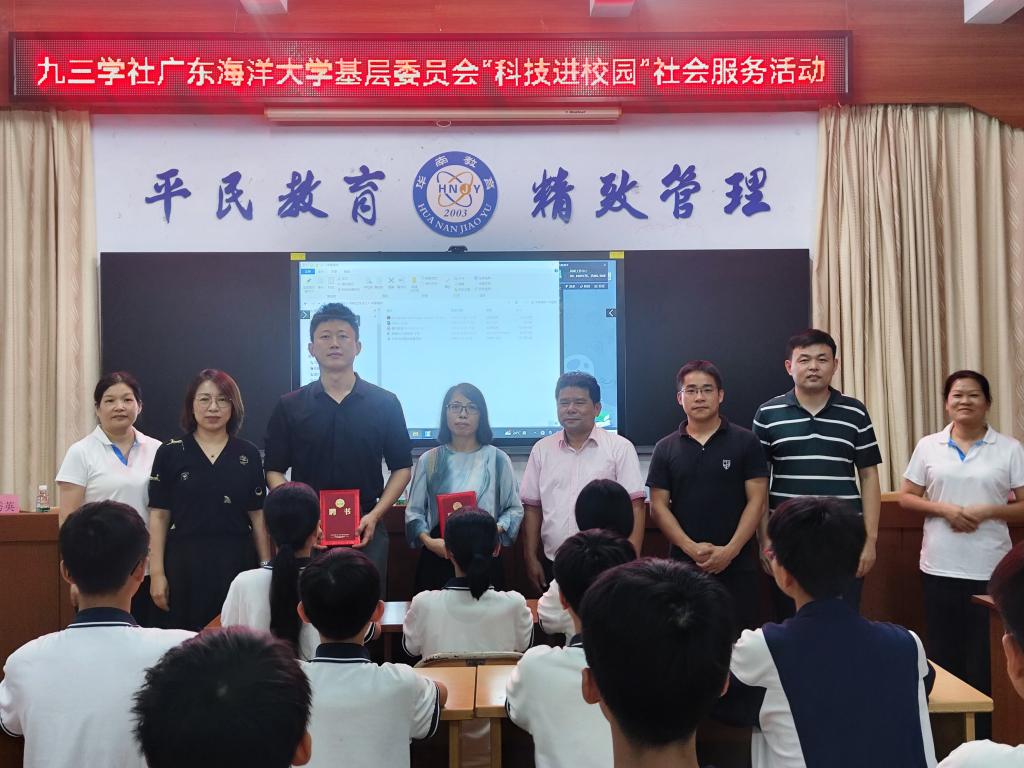 为积极响应教育部等十八部门关于新时代中小学科学教育工作的部署,充分发挥高校教育资源,进一步提高青少年的科学素养,增强科技意识。10月20日下午,九三学社海大基层委组织社员到湛江华南实验学校(农民工子弟学校)开展“科技进校园”社会服务活动。