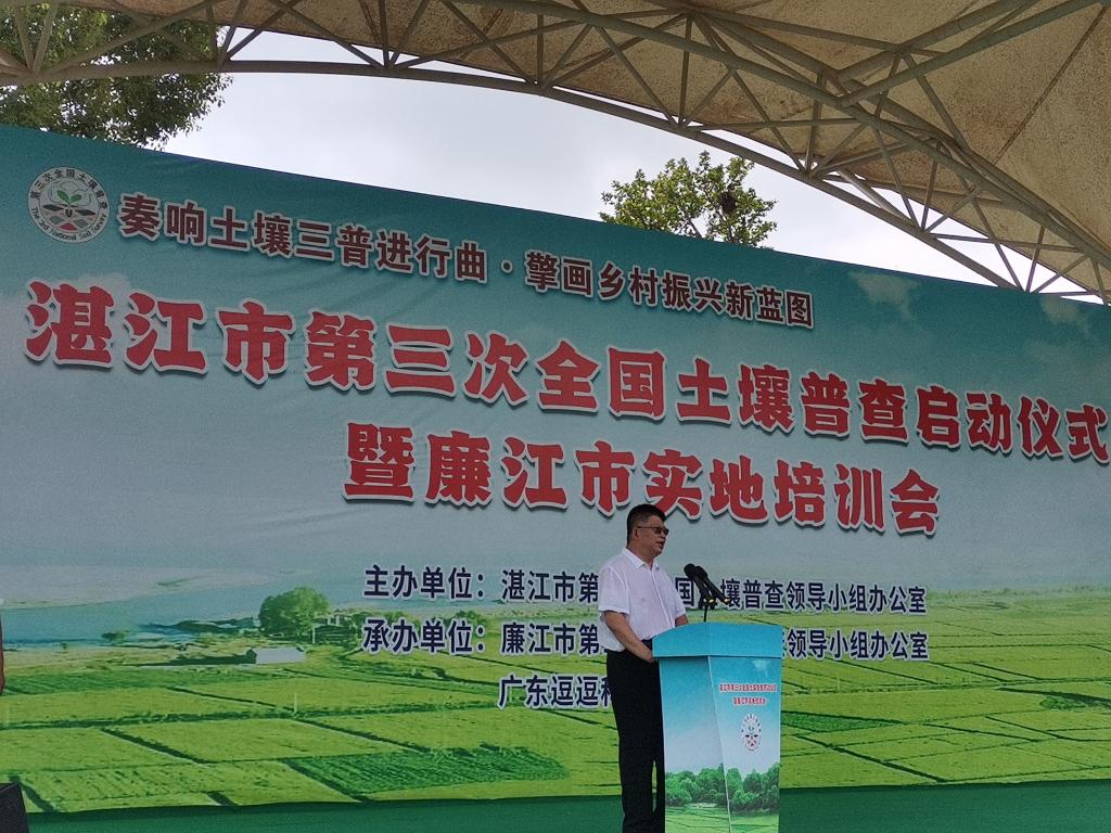 8月24日,湛江市第三次全国土壤普查启动仪式暨廉江市实地培训会在廉江市鳄鱼公园举行。广东省农业农村厅二级调研员卢茂权,湛江市政府副秘书长张国强,廉江市委书记陈恩才,副市长韩阳,湛江市及各县(区)农业农村部门相关人员、土壤普查采样技术支撑单位、相关农技人员等参加了启动仪式。开云官网作为广东省第三次全国土壤普查省级技术支撑单位,滨海农业学院院长郑殿峰、副院长马驿、郑超副教授、党政办王继全参加了启动仪式。