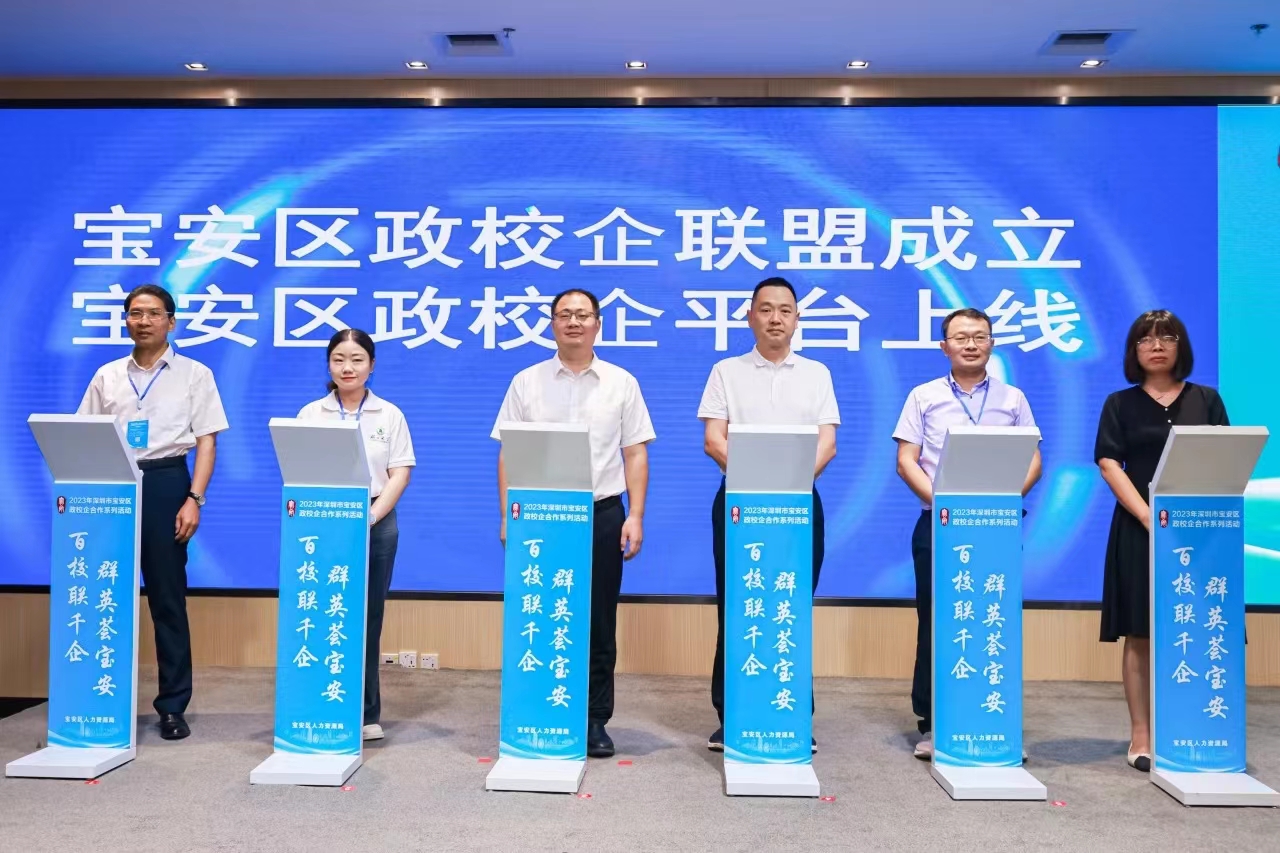 活动中,深圳市宝安区有关部门向校企介绍了宝安区政校企联盟平台及人才政策等,林晓敏作为高校代表应邀上台开启宝安区政校企联盟成立仪式暨宝安区政校企合作平台上线仪式。随后,在洽谈活动现场,林晓敏与多家企业就人才培养、就业供需、产教融合、校企合作等方面进行了广泛深入交流,并与多家企业达成初步合作意向。