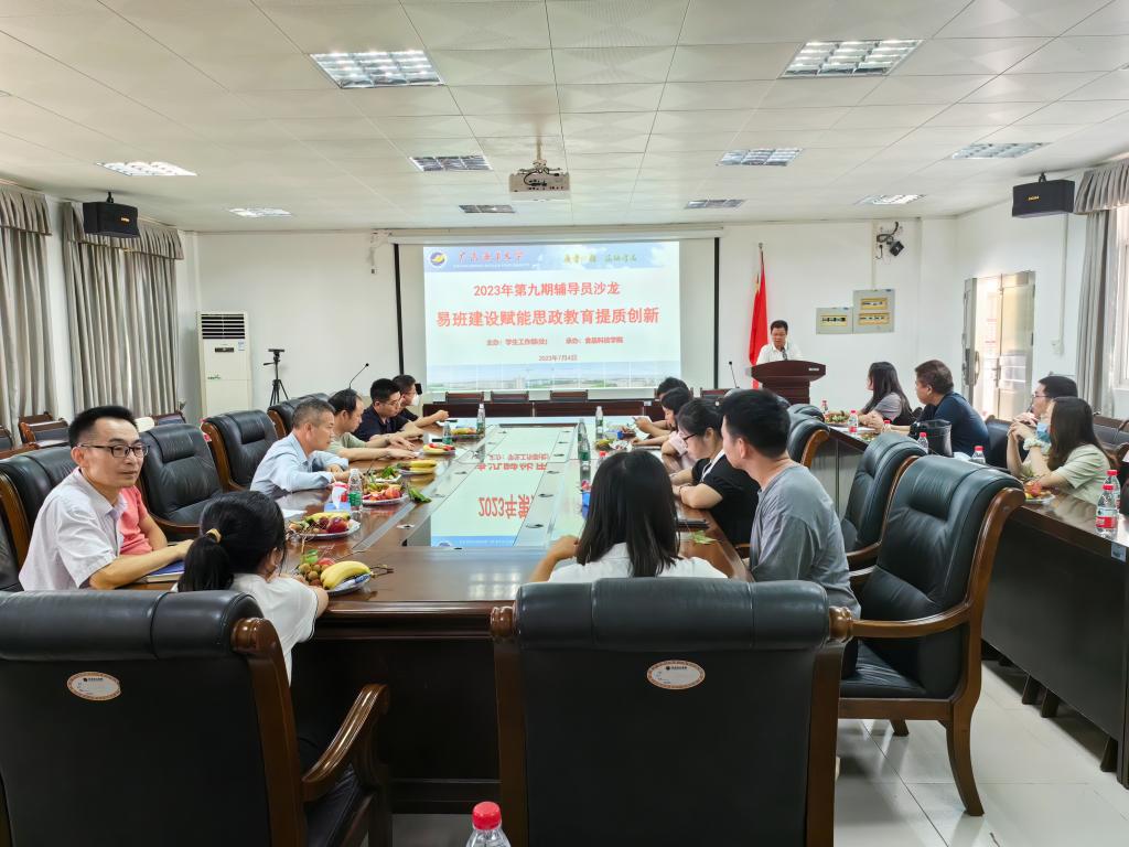7月4日下午,以“易班建设赋能思政教育提质创新”为主题的2023年第九期辅导员沙龙在湖光校区望海楼A105举行。本次活动由学生工作部主办、食品科技学院承办。食品科技学院党委副书记丁永成、学校易班发展中心指导老师胡江丽以及各学院易班指导老师、辅导员代表共30余人参加活动。活动由丁永成主持。