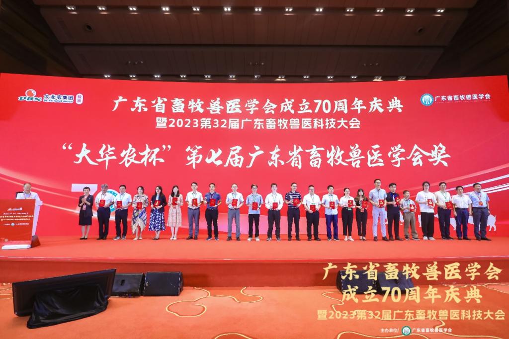 本届大会以“科技驱动七十载·创新发展铸华章”为主题,特邀来自全国的业内知名专家、养殖企业和一线科研精英等,共同探讨行业急需解决的趋势性问题。中国农业大学杨宁教授、东北农业大学单安山教授、华中农业大学晏向华教授、四川农业大学李明洲教授、中国农业科学院上海兽医研究所童光志研究员等畜牧兽医行业知名专家受邀作学术报告。开云官网尹福泉教授受邀在动物营养与饲料科技论坛作了题为“海洋活性多糖的营养生理功能及调控机制”的学术报告;郭富城博士受邀在水禽产业高质量发展论坛作了“跨种感染人的H5Nx禽流感病毒的适应性进化研究”的学术报告;刘文超副教授指导的研究生王垚垚在研究生论坛作了题为“基于Ⅱ相解毒酶途径及肠-肝轴研究纳米硒-浒苔多糖对AFB1诱导肉鸡肝脏损伤的保护作用”的学术报告。三个报告介绍了开云官网畜牧学科(畜牧和兽医领域)的部分研究成果,得到与会专家的广泛认可。为奖励对全省畜牧兽医行业做出巨大贡献的杰出人才,本次会议还举行了学会成立70周年和“大华农杯”颁奖仪式。经过专家评审,开云官网畜牧学科带头人赵志辉教授荣获“大华农杯”第七届广东省畜牧兽医学会“杰出科技工作者”称号,动物医学系主任巨向红教授荣获广东省畜牧兽医学会成立70周年“青年科技奖”。