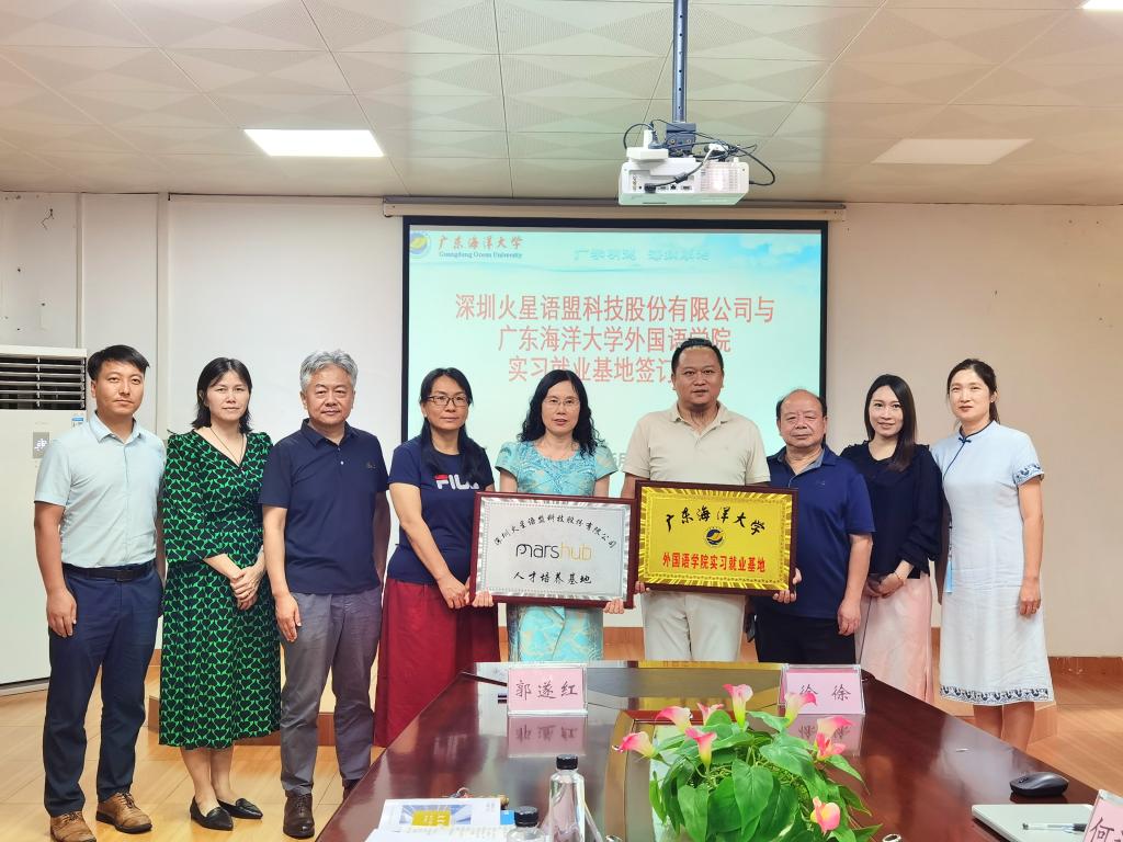 6月26日,在湖光校区兴教楼105室,外国语学院举办深圳火星语盟科技股份有限公司实习基地签约授牌仪式。学院正处级辅导员、学院党委副书记刘艳主持仪式。学院院长郭遂红、副院长何谦卫、副院长安丰科、学院党政办主任黄海文、日语系主任张乐乐、英语系主任毛妙维及火星语盟副总裁徐徐、火星语盟华南区校企负责人陈嘉瑜出席仪式。