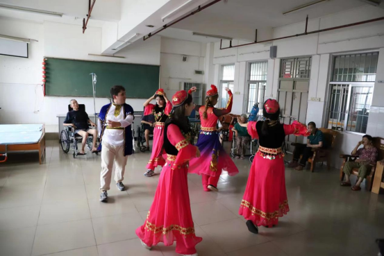 活动开始,养老院负责人从饮食、疗养、护理三个方面为大家介绍养老院对老人们的日常照顾情况,让同学们对养老院的经营和管理有更初步的认识。接着,几位新疆少数民族志愿者热情地为老人们表演富有民族特色的舞蹈,优美动听的音乐和轻快曼妙的舞姿使老人们沉醉其中。舞蹈结束后,易班励志服务中心的志愿者为老人们合唱一首《明天会更好》,用歌声向老人们传递着自己的热情与温暖。随后,志愿者们参观养老院,了解老人们日常生活情况和需求,并与老人们促膝交谈、倾听他们的心声、了解他们过去的故事。