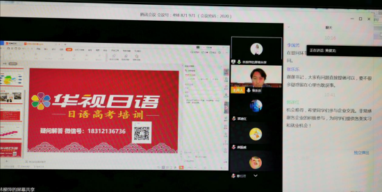 本次“云招聘”由日语系副主任、日语专业负责人张乐乐副教授主持和召集。招聘会邀请了广州联普翻译有限公司、早道(大连)教育科技有限公司、水木日语教育科技有限公司、蒲公英乐学日语教育(广东)有限公司、广州市新为学商务服务有限责任公司等10家用人单位参加。各用人单位按照会议安排次序,依次进入“会场”宣讲,分别就公司背景、发展现状、招聘需求等内容为同学们做了详细介绍。会上,学院2020届日语专业毕业生结合自身实际,就薪酬待遇构成、培训和晋升机制、食宿条件等具体问题积极同招聘单位的工作人员进行交流,招聘方也一一耐心解答毕业生关心的求职问题。线上招聘宣讲过程互动氛围热烈,赢得用人单位和毕业生的一致好评,有效促进了校企双方的信息沟通。在线招聘会结束后,外国语学院党委书记李国芳和院长郭遂红对此次招聘活动进行了总结发言,对本次“云招聘”的筹备工作给予高度肯定,并鼓励学院毕业生积极联系用人单位,咨询相关就业指导老师,努力帮助毕业生在疫情防控期间顺利实现就业。