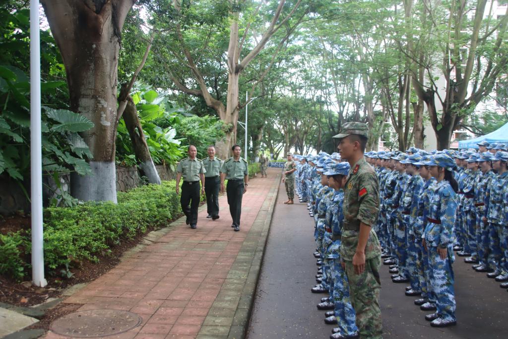 金秋时节,秋高气爽,军歌嘹亮,青春激昂,2023级新生军训工作正在如火如荼地进行。9月19日上午,学校党委副书记林晓敏、副校长邓逢光前往湖光校区军训区域,检查指导2023级新生军训工作,看望和慰问工作在军训一线的承训官兵、老师和参训新生。武装部部长温一星、副部长杨春杰陪同检查。
