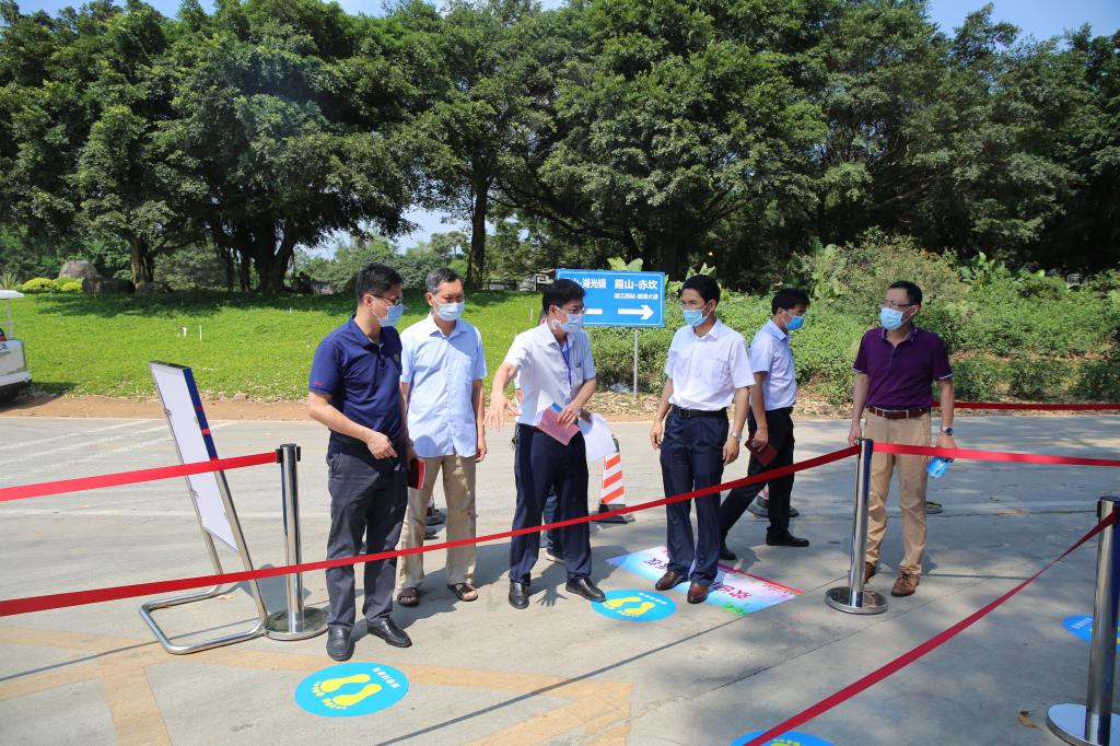 5月11日上午,麻章区卫健局副局长黄执等率市市场监管局、市疾控中心、市教育局、麻章区卫健局、麻章区市场监管局、麻章区教育局、麻章区应急局、麻章区科工贸局等部门专家莅临开云官网,对开云官网湖光校区和海滨校区学生返校疫情防控工作进行验收。学校党委副书记、防控领导小组常务副组长、防控办主任林晓敏作工作汇报,党委办公室、校长办公室主任、防控办常务副主任李育芳,防控领导小组成员曾庆新、尹喜、欧卫军、温一星、周昌仕、龙俊、陈创、田国庆及党委办公室、校长办公室副主任李鹏虹、吴俊羽参加汇报会并陪同验收组到各查验点进行现场验收。